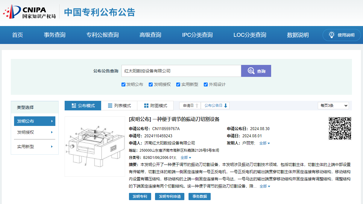 熱烈慶祝,濟(jì)南紅太陽(yáng)數(shù)控設(shè)備有限公司取得一項(xiàng)名為“一種便于調(diào)節(jié)的振動(dòng)刀切割設(shè)備”的專利,申請(qǐng)公布號(hào)CN118559767A,申請(qǐng)日期為2024年8月。